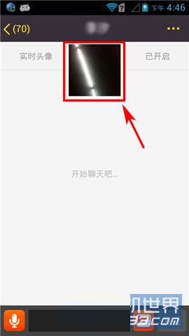 2)在聊天窗口,点击上方正中间的【黑色圆点】即可开启实时头像。(如下图)