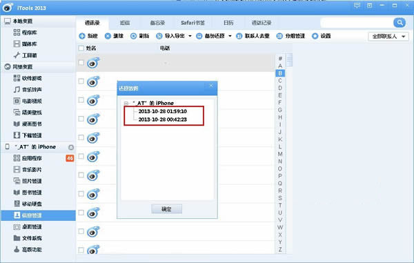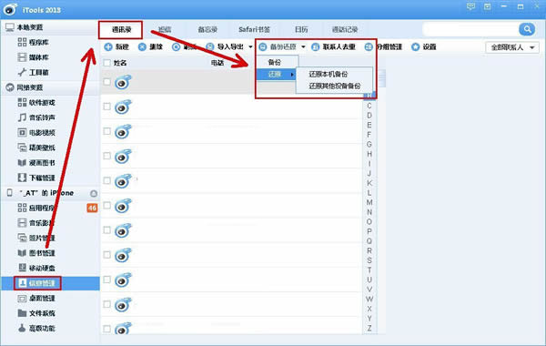 恢复:这个方法只适用于使用过iTools中备份过.只恢复备份中通讯录的机友可选择(操作步骤比较多,相对方法一、二会比较麻烦)