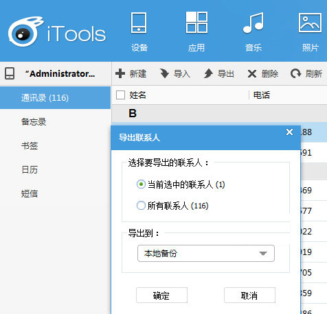 恢复:点击【通讯录-备份还原-还原-还原本机备份】,选择需要恢复的日期(每一次备份通讯录iTools都会自动记录时间)