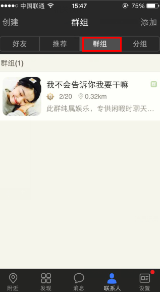 1、进入陌陌,点击联系人-群组。