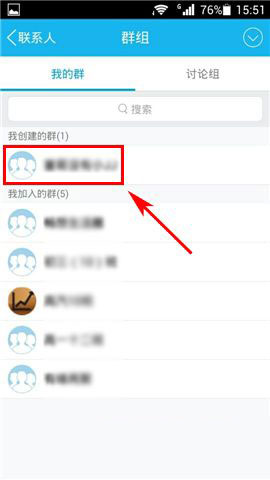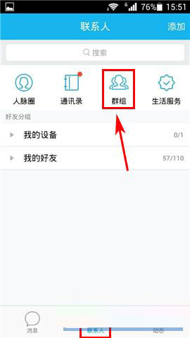 1)打开手机QQ,在【联系人】栏找到并点击进入【群组】。(如下图)
