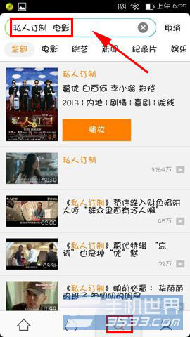 1)安装并打开腾讯视频,在主界面中点击【搜索】,输入想要想要下载的电影如【私人订制】。(如下图)