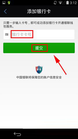 3)输入银行卡卡号,并点击【提交】,最后点击【确定】即可。(如下图)
