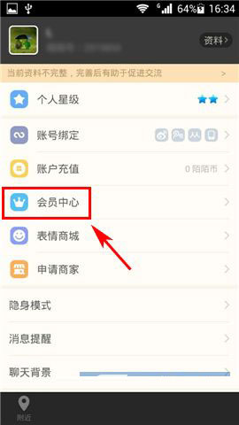 1)打开陌陌,在右下角【设置】栏选择【会员中心】。(如下图)