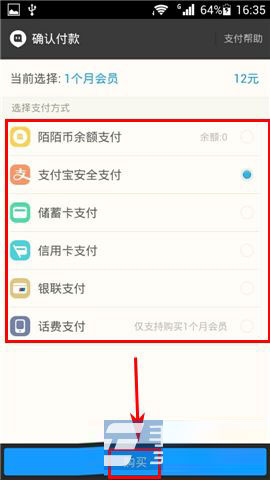 3)选择完会员种类后,选择一种付款方式,点击下方【购买】然后完成付款操作即可。(如下图)