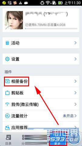 1)安装并打开腾讯微云,进入【更多】面板,点击【相册备份】。(如下图)