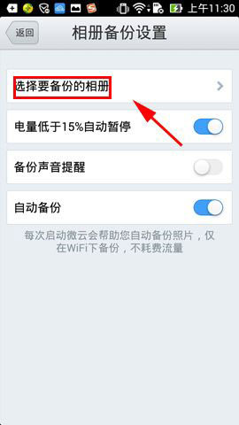 3)进入【相册备份设置】可设置需求自动备份的相册。(如下图)