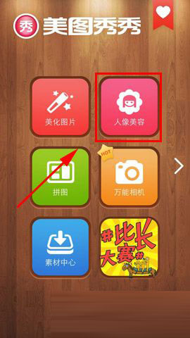 1)安装并打开美图秀秀,点击【人像美容】。(如下图)