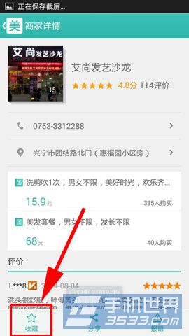 2)随后大家点击选中的商家,最后点击屏幕左下方收藏即可完成!(如下图所示)