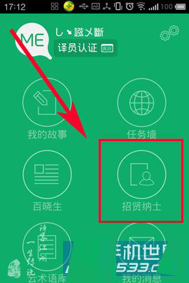 1)打开译客传说,点击【招贤纳士】。(如下图所示)