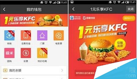 不仅美团开启了此次“一元吃肯德基香辣鸡腿堡”活动,百度钱包也加入了,你还在等什么,快来享用吧。