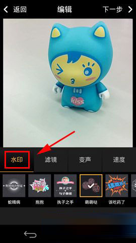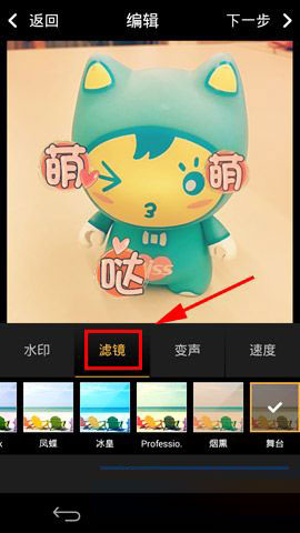2)点击【水印】可以添加视频短片水印;点击【滤镜】则可以修改背景色。(如下图)