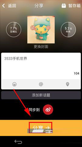 4)编辑好视频后点击【下一步】,选择【分享】即可。(如下图)