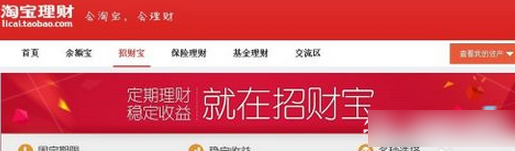 4、在进入淘宝理财的界面以后,即可进入下图所示界面,可以进入招财宝的具体页面