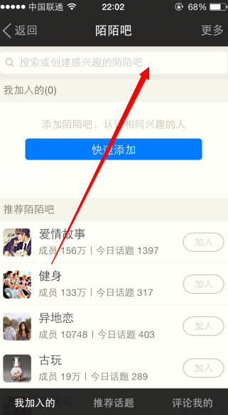 1、打开陌陌软件,进入陌陌后点击下栏的发现,然后点击进入陌陌吧