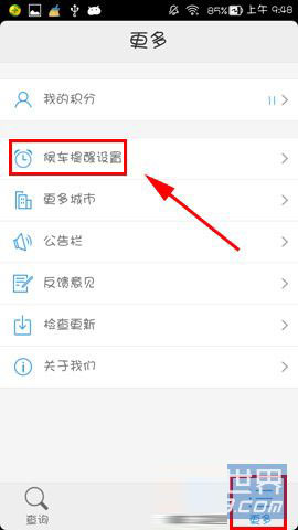 1)安装并打开车来了,点击主界面中的【更多】选择【候车提醒设置】。(如下图)
