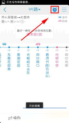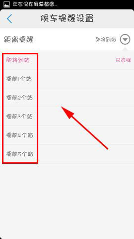 2)根据需要选择【距离提醒】,在公车路线中我们点击【闹钟】即可开启提醒。(如下图)