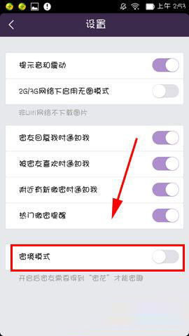 2)点击【设置】,将【密境模式】激活即可。(如下图)