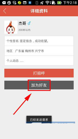 2)点击【附近的人】,根据需要查找感兴趣的乐友点击乐友【头像】。(如下图)