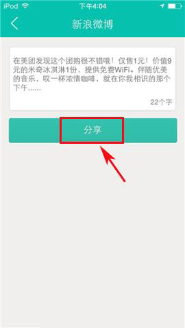 以上就是美团分享至新浪微博方法介绍,大家看明白了吗?希望大家看完之后会有所帮助,谢谢大家阅读本篇文章!