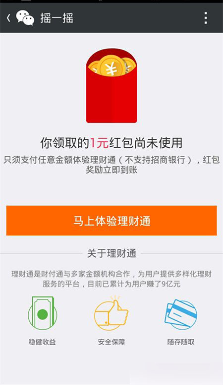 第四步、完成以上步骤后,微信就会出现你出现的红包金额。下图,是小编重复扫描的图片,所以,它只能扫描一次来考验人品了。查看到了金额后,你就可以点击“马上体验理财通”。