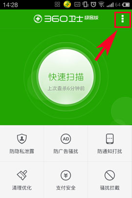 1)点击打开360卫士极客版,然后点击右上角(如下图所示)