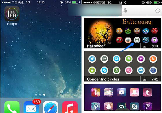 一、首先在iPhone中安装Iconer应用,大家可以直接前往苹果APP Store应用商店下载安装,安装之后打开,然后选择一个自己喜欢的图标类型,如下示意图: