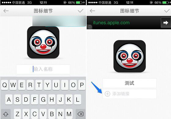 三、接下来我们需哟输入一个名称,这个名称可以写成等下需要替换的应用图标名称即可,完成后,点击下方的“添加链接”,之后选择添加应用,也就是这个图标今后会指向打开的应用,大家可以自由选择,如下示意图所示: