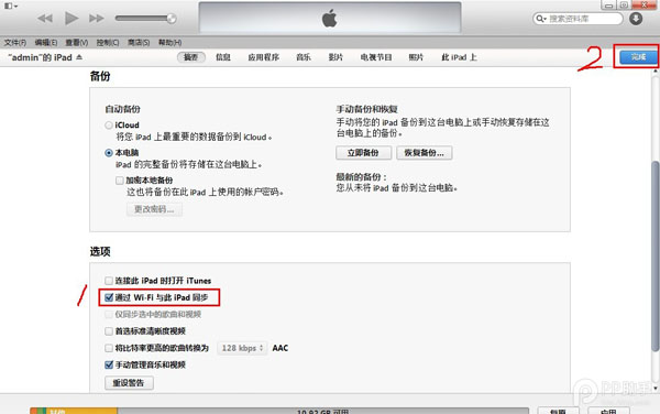 2、点击iPhone --勾选【通过Wi-Fi与 此 iPhone 同步】--完成;