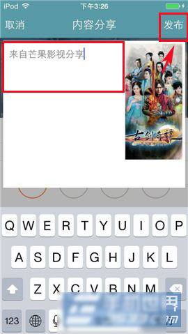 2)点击【新浪微博】,进入界面可以写你分享心得,点击【发布】。(如下图)