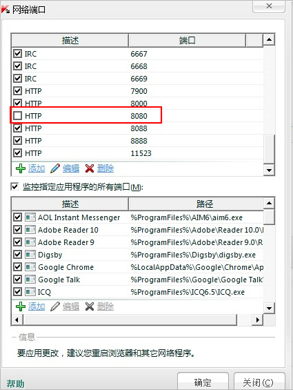 去掉勾选的“8080端口”,点击确定后,重启应用宝即可。
