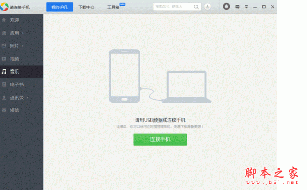 打开腾讯手机管家PC版也就是应用宝主界面,点击“USB连接”按照提示操作即可。