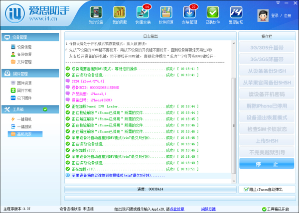 3.当你操作进入DFU模式后,爱思助手就会开始自动运行。