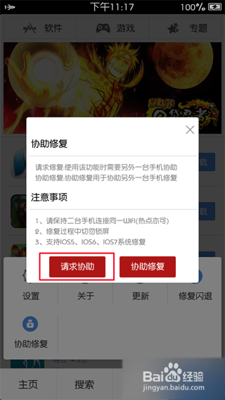 2.请求协助的iOS设备需要激活PP助手(正版)修复功能