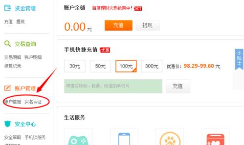 4、当大家成功登录百度钱包帐号后,小编建议对账户认证是很有必要的,这样就很方便购买百度推出的理财产品。同时为了自己的账户安全,账户信息和实名认证也是需要的;