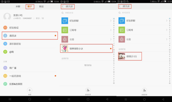 善良的米聊专门为小冰设置了领养入口,只要你进入米聊2015界面你就能很容易的发现小冰的踪迹,进入米聊-圈子-通讯录-领养微软小冰-手机号码注册-领养成功-带小冰到米聊玩(如下图)。完成领养。