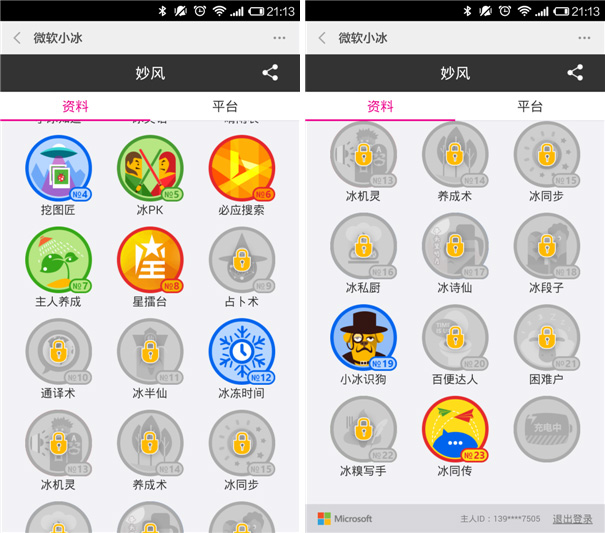 由于小编领养小冰的时间不长,23项技能中才激活了12项,还有很多技能还处于锁定状态,随着小冰级别的提升,会逐步解锁,到时候也能进一步体会其他技能的有趣之处了。当然,小编正在努力中,多多和小冰交流聊天,提升等级,尽快把其他技能开出来和大家一起分享。
