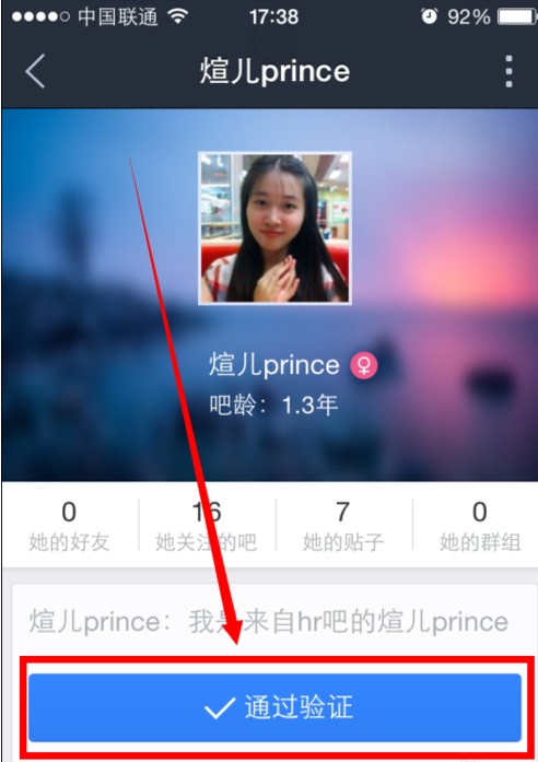 其实还有一种方法更加方便,就是当你在贴吧里回帖遇到感兴趣的人时,可以直接点击他的头像进入他的主页,这个时候可以直接点击加为好友,等待对方验证即可。