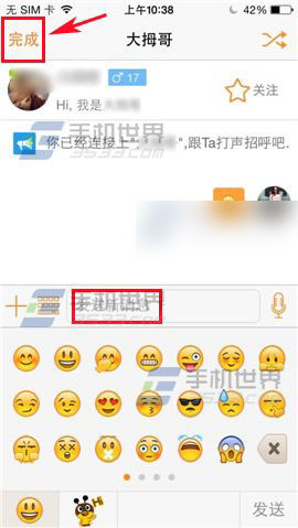 2)然后就会链接上一个陌生人,你可以跟他发信息聊天了,点击【完成】,他就会显示在消息框,你可以在哪进行聊天认识。(如下图)