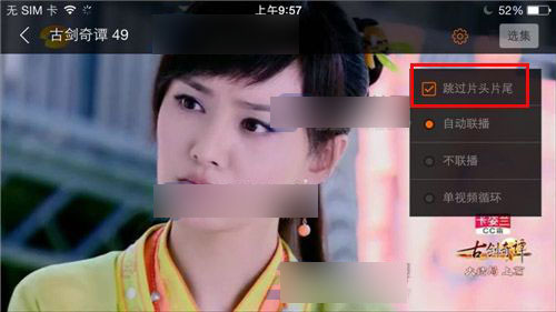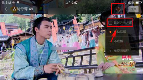 2)在播放视频屏幕点击【设置图标】在点击【跳过片头片尾】。(如下图)