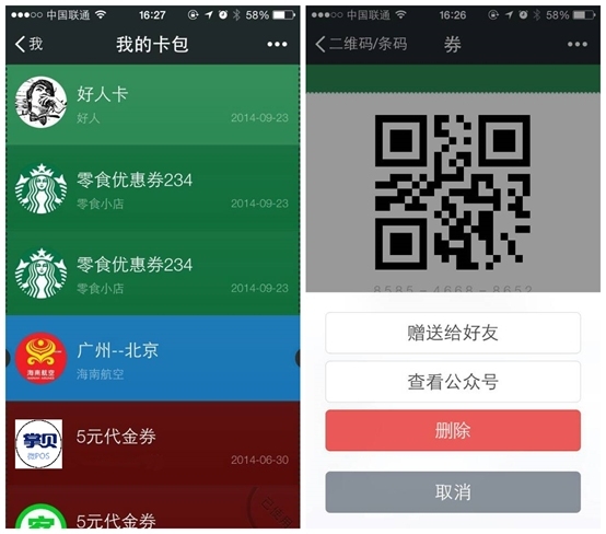 此外,微信在卡包的礼品卷功能中还提供卡券转赠服务,用户可以将自己的优惠券、礼品券转赠给朋友。微信的卡包更像是一个虚拟钱包,用户可以在卡包中管理自己的银行卡、会员卡、登机牌。