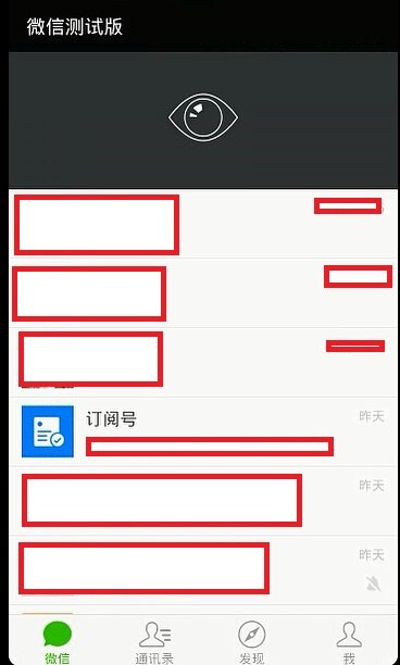 3、下拉微视频主界面有动态惊喜效果——眼睛!直接进入短视频页面!(笔者评:情怀型小惊喜)