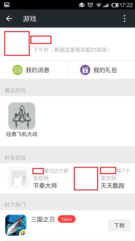 1、我的游戏、我的礼包,最近在玩、好友在玩、时下热门……