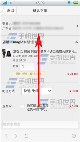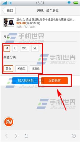 2)进入页面后选择自己的尺码和喜欢的颜色,在点击【立即购买】,然后手指按住屏幕向上拉动。(如下图)