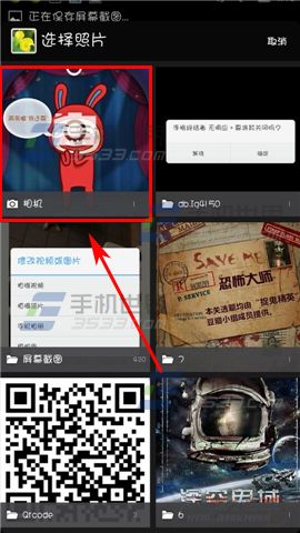 2)选择自己拍摄视频的位置【手机相册】点击一下,点击自己要上传的视频或相片。(如下图)
