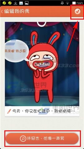3)选择好后点击右上角的【√】,页面跳转后下方可以选择自己喜欢的歌曲,然后点击右上角的【√】就完成啦。(如下图)
