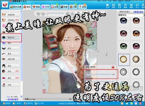 小眼睛的美女们还在为自己拍照时看不到眼睛而烦恼吗?用美图秀秀的眼睛放大功能加上美瞳,就能变成电子十足的大眼妹啦~~当然,化妆技术出神入化的亲们可以仅作参考。如果嫌眼睛太大了,也可以用美图秀秀缩小~~哈哈!