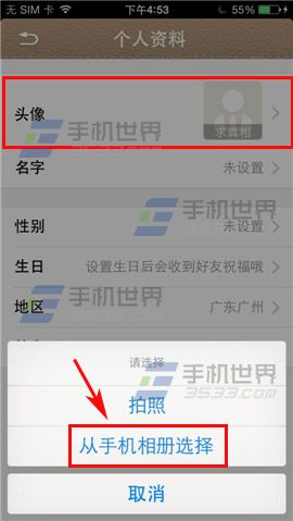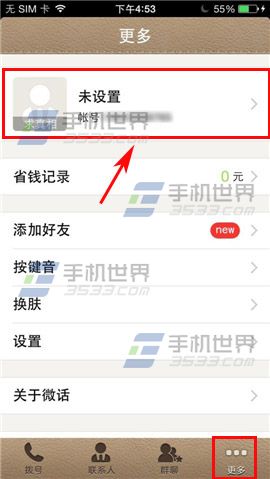 1)首先打开微话,点击【更多】,点击自己【账号】,进入界面点击【头像】,弹出窗口选择拍照或者从手机相册选择(例:从手机相册选择)。(如下图)