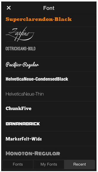 更强大的是,Phonto 内置了超过 400 种字体(多为英文),为你留下极大的创作空间。 如果还是不能满足的你话,你只需要将下载的字体通过 Phonto 即可导入使用,强大至极。