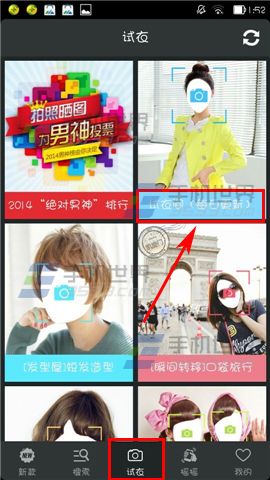 1)下载并打开【每日新款】,进入界面后点击下方中间的【试衣】,然后找到并点击【试衣间】。(如下图)